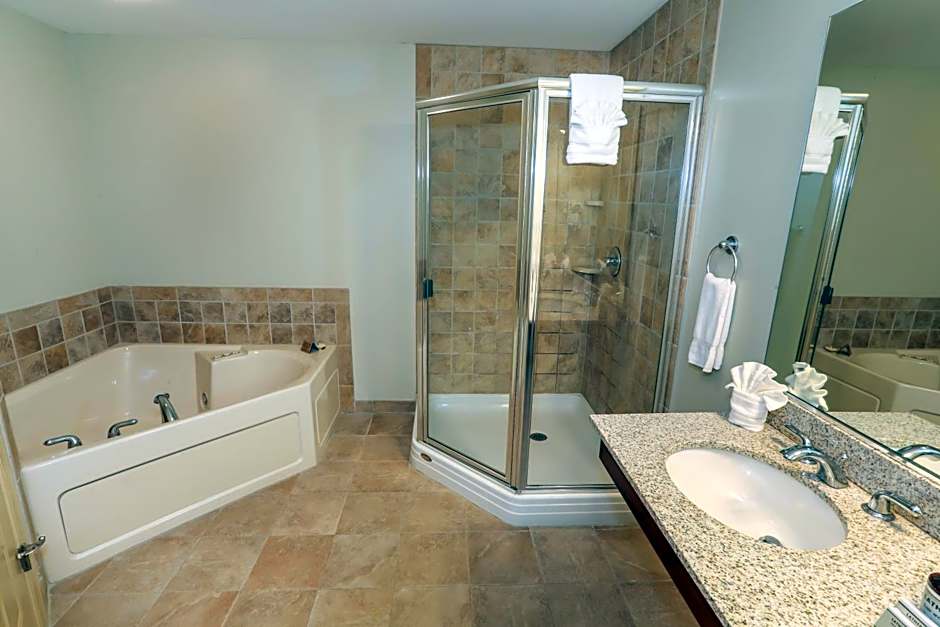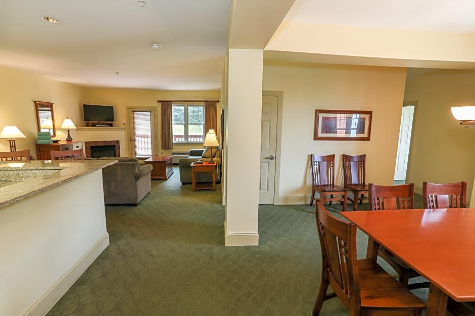 The Three Bedroom Suite is a suite built for family and friends. This room can sleep 8 guests as it has a pullout sofa in the living room and 2 full baths. Bedding will include 1 King and 1 Queen in two of the bedrooms. The 3rd bedroom may contain 2 sets of twin bunk beds or another queen. There is a fully equipped kitchen, cable TV and a fireplace in the living room.